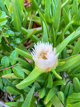 Hottentot-fig ice plant (Carpobrotus edulis) white yellowish flowers