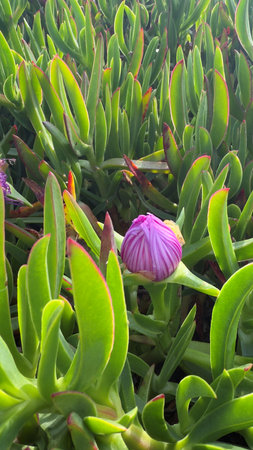 pink ice plant (Carpobrotus edulis) growing on the beaches.