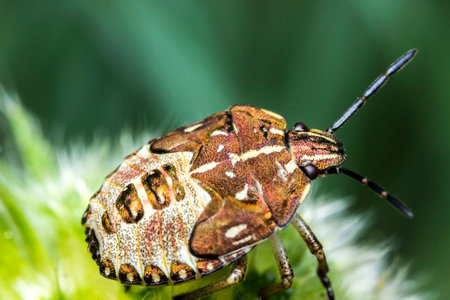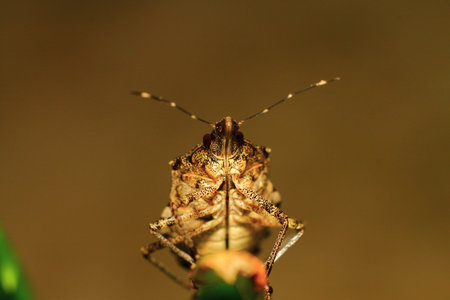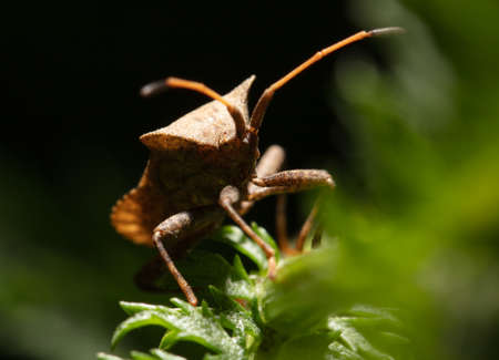 brown forest tree bug sitting on green vegetation, close-up in natural environment