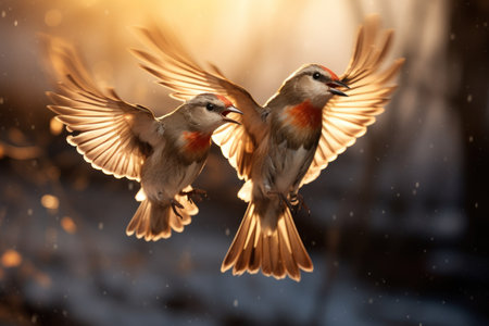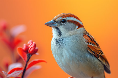 a sparrow perched on a windowsill, mesmerized by its reflection in the glass, created with generative ai