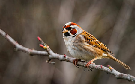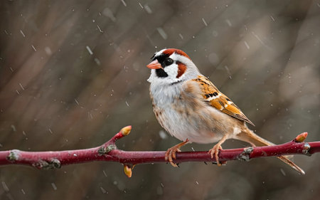 Elegant finch perched atop a vibrant tulip blossom in spring