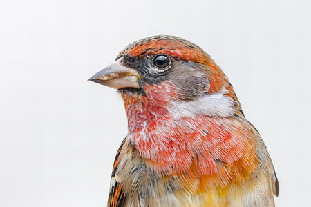 finches in a natural forest setting, captured with a canon eos 5d mark iv, showcasing bold and vibrant colors in a monochromatic color scheme. the realistic animal portraits reflect the influence of peter blume's art, while the light magenta and red hues add a touch of confucian ideology to the wallpaper. ai generated