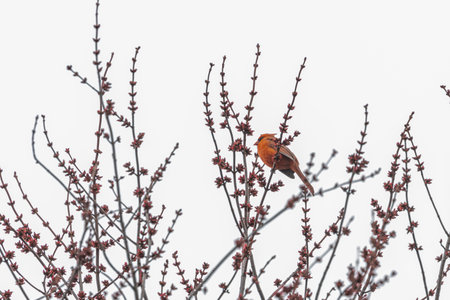 Vibrant bird perched on blossoming dogwood branch in springtime