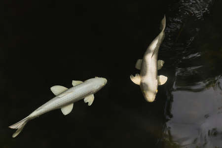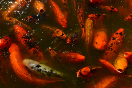 A scene of carp ( Koi carp ) swimming in a pond. Freshwater fish background material.