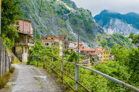 Carrara, Italy - marble quarry in Fantiscritti valley. Marble works of Miseglia. Apuan Alps mountains.
