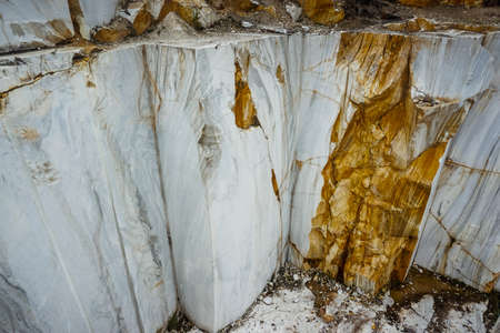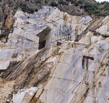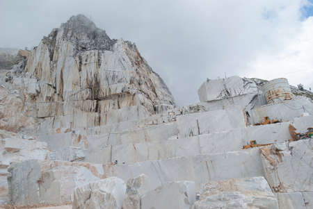 Outdoor quarry of white Carrara marble on the Apuan Alps (Alpi Apuane), Tuscany, Italy, Europe.