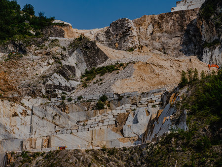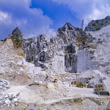 View of the Carrara Marble Quarries with Excavation Vehicles ready for Work.