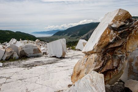 blocks of white marble in Carrara, Tuscany, Italy