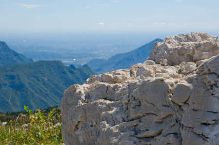 Block of marble with Carrara in the background