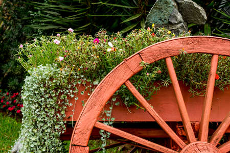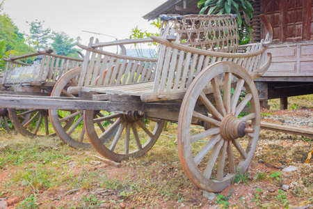 Wooden wagon bullock cart or bullock car in garden - Garden decoration with vintage Asian style wagon