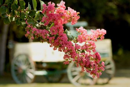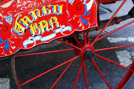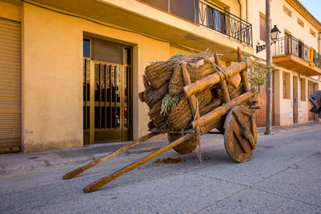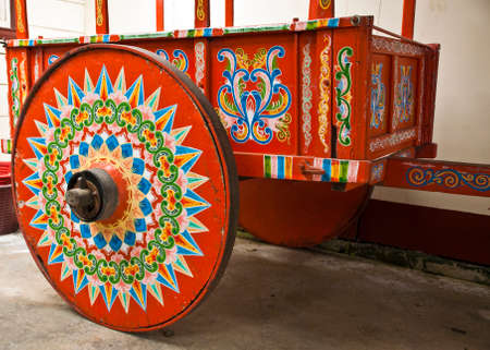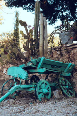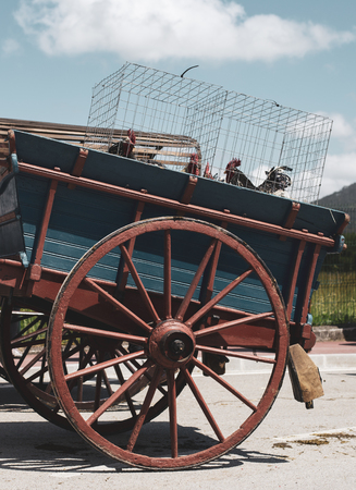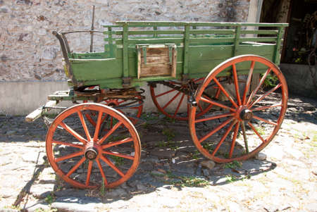 Old horse-driven wagon that today serves as crafts. Ancient object that served as a means of transport and cargo. Decoration object.
