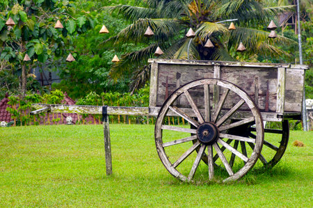 An old wooden carriage in the park, in Gunung Kidul, Yogyakarta, Indonesia