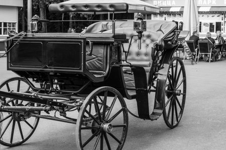 Horse-driven carriage at street in Vienna, Austria. tradition medieval