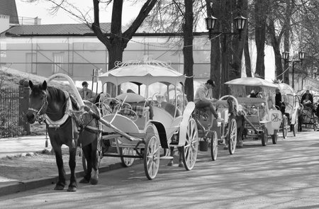 Traditional equestrian mode of transport in the tourist center of Krakow Poland