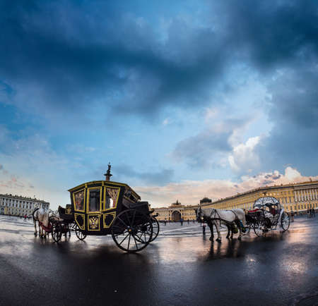 ST. PETERSBURG, RUSSIA - JULY 15, 2016: The coach for walks on the Palace Square in St. Petersburg, Russia