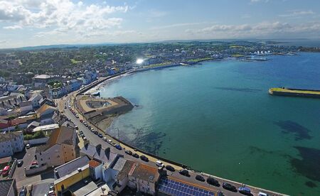 Beautiful landscape view of seaside town of Peel from Peel Castle in the Isle of Man