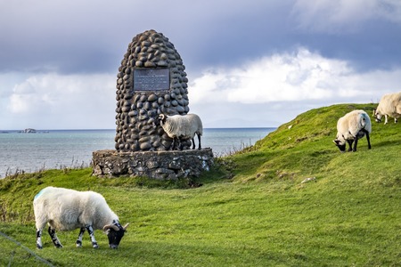 Duntulm, Isle of Skye / Scotland - October 14 2018 : This cairn is commemorating the MacArthurs heriditary pipers