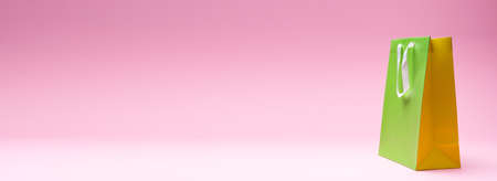 Paper shopping bag on pink background.