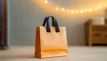 craft paper shopping bag on wooden table