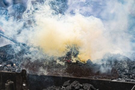 BBQ-smoke. Food background. Detail of the smoke