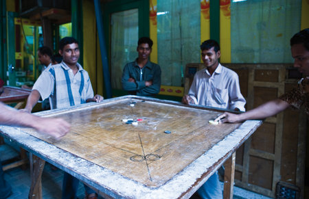 MUMBAI, INDIA -NOVEMBER 27:Men playing board game on street on Nov. 27, 2010 in Mumbai. Board games have been played in most cultures and societies throughout history.They are still popular in India