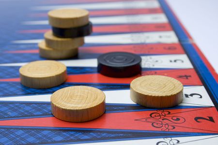 Sports or recreation Board game board with checkers. Hobby. Checkers on the playing field for the game.