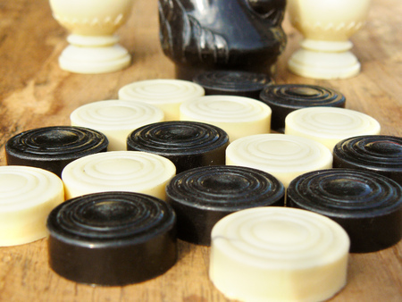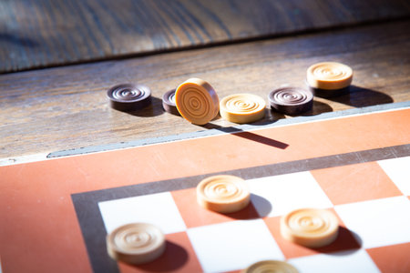 Checkerboard with checkers. Game concept. Board game. Hobby.