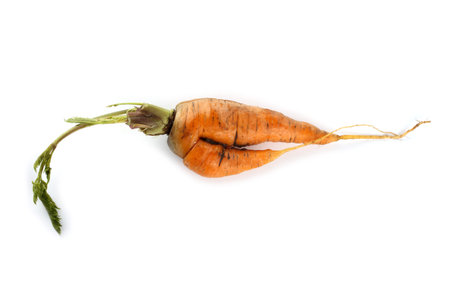 Organic carrot on white background, imperfectly shape, ugly vegetable, Food trend