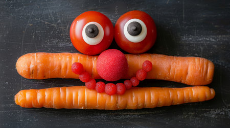 A group of carrots with eyes and a face in the middle, AI
