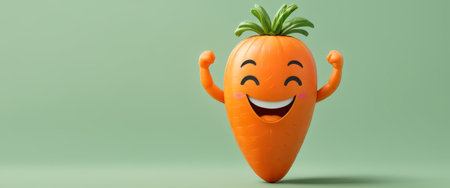 Joyful Cartoon Carrot Flexing Muscles on Green Background