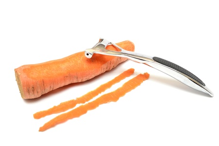 Metal Vegetable Peeler Peels a Fresh Carrot