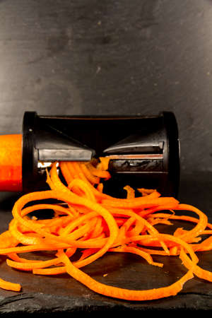 Spiralizer with spiralised Carrot, macro.