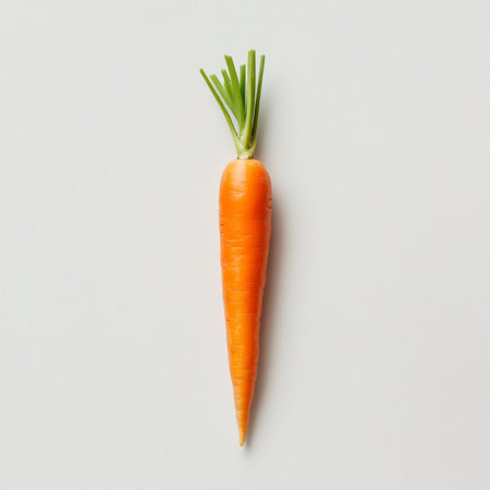 An inventive representation of a large carrot with a syringe, depicting a playful approach to food and nutrition. The vibrant orange hue contrasts with a soft blue background, highlighting the fresh vegetables and creating an engaging visual for health-themed content.