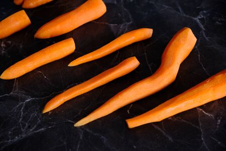 Sliced carrots are on the table for cooking carrot bacon. Vegetarian food, meat replacement, vegetable protein