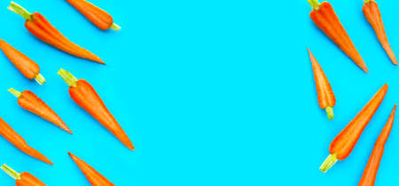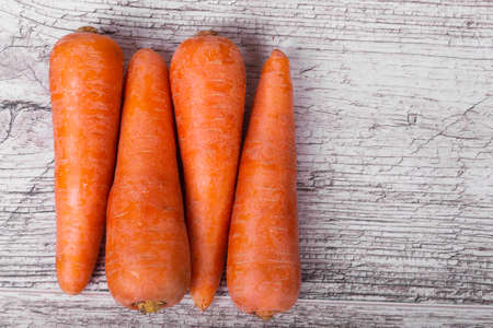 Food Organic Vegetable Colorful Background. Tasty Fresh Carrots on Wooden Table. Top View with Copy Space. Healthy Life Concept.