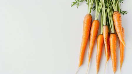 A cluster of fresh orange carrots arranged neatly on a pristine white background, showcasing their crispness.