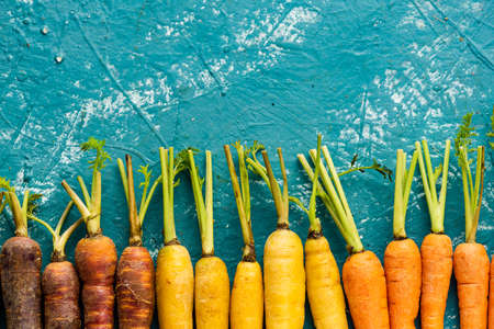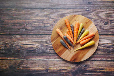 Farm Fresh Colorful Mini Carrots. Top Down View. Copy Space.