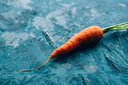 Fresh and juicy young carrot with leaves on the background of old stucco, close-up