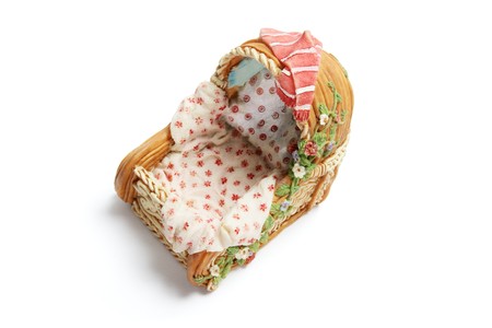 Beautiful carrycot or cradle with lace and ribbons for a newborn baby.