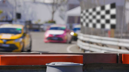 Speed spectacle! Blurred racetrack with starting or ending line captures the intensity of high-speed competition, thrilling spectators.