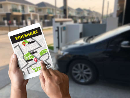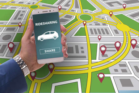 mobile application Ride share taxi service on phone man holding phone