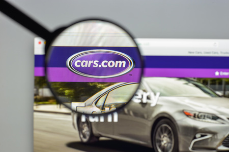 Milan, Italy - August 10, 2017: Cars.com website homepage. It is a website which was launched in June 1998. It is the second largest automotive classified site. Cars.com logo visible.