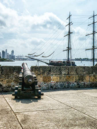 San Lucas, part of the walls and cannons in the old town, Cartagena, Bolivar Department, Colombia