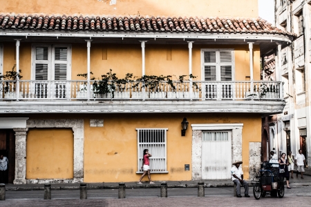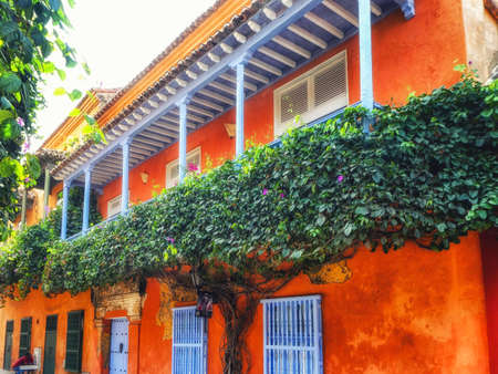Cartagena, Colombia- March 2, 2017: Colorful houses in the old town Cartagena, Colombia