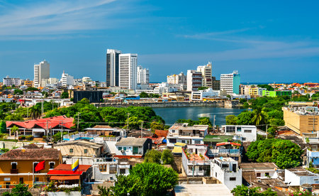 Skyline of Cartagena de Indias, Colombia, a blend of modern and old architecture