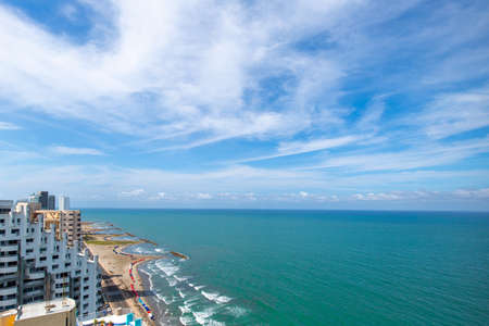 Resorts of South America. Aerial view of the Caribbean coast in a modern tourist area of the city.