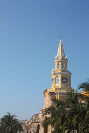 CARTAGENA, COLOMBIA - MARCH 6, 2023: View of the Clock Tower in the old town of Cartagena de Indias, Colombia