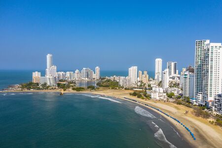 Bocagrande neighborhood of Cartagena, Colombia. Skyline architecture of the city.
