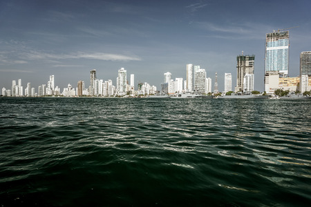Skyline in Cartagena, Cartagena de Indias, Colombia shot in the early morning from the harbor.