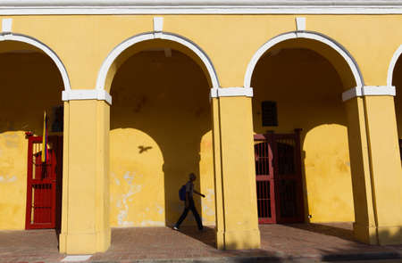 CARTAGENA, COLOMBIA - SEPTEMBER 15, 2019: Unidentified people on the street of Cartagena, Colombia. Cartagena is a port city on Colombia’s Caribbean coast